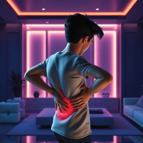 Dán ở vùng thắt lưng, nơi tập trung áp lực cột sống, để nhiệt FIR và ion âm giảm đau và thư giãn cơ.